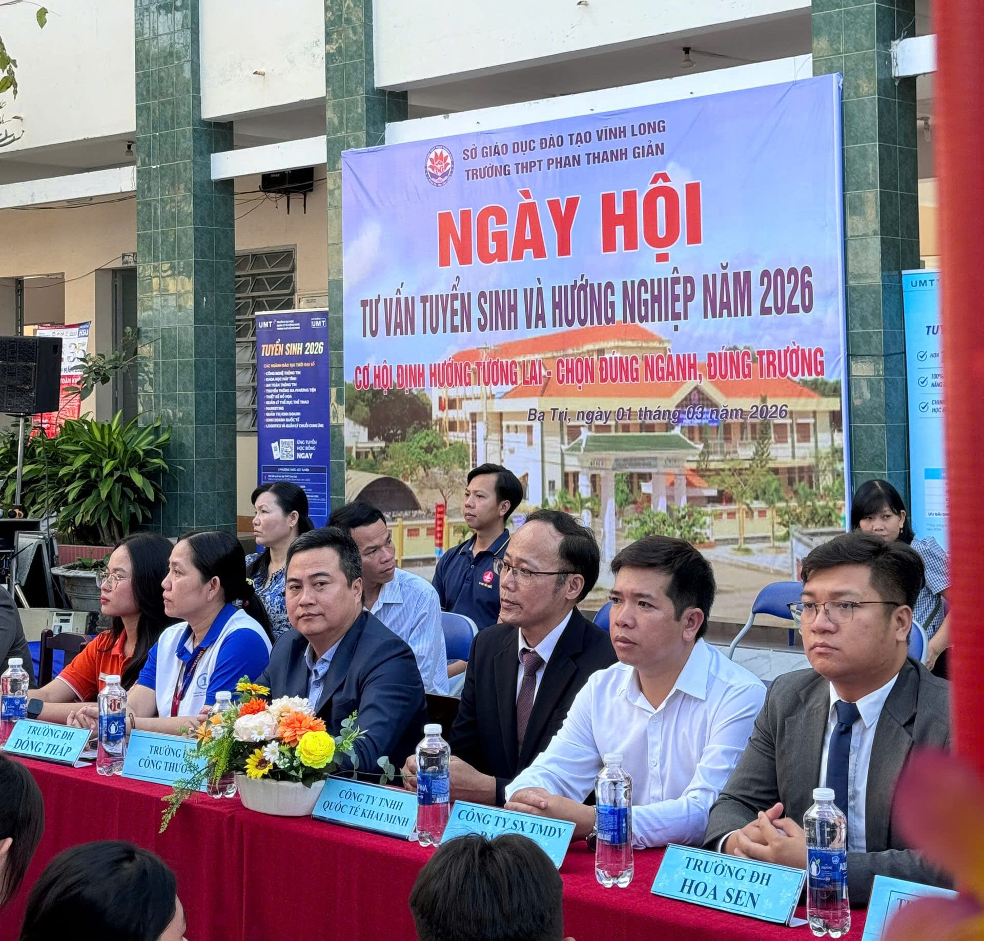Ngày 01/03/2026 vừa qua, Ngày hội Tư vấn Tuyển sinh – Hướng nghiệp tại THPT Phan Thanh Giản đã diễn ra trong không khí sôi nổi, hào hứng và đầy năng lượng tuổi trẻ. Với sự góp mặt của học sinh các trường THPT Phan Thanh Giản, THPT Phan Ngọc Tòng, THPT Sương Nguyệt Anh, THPT Phan Liêm và trung tâm GDNN&GDTX Ba Tri. Chương trình là cầu nối giúp các bạn học sinh tiếp cận thông tin chính xác, định hướng rõ ràng hơn cho chặng đường sau khi tốt nghiệp.