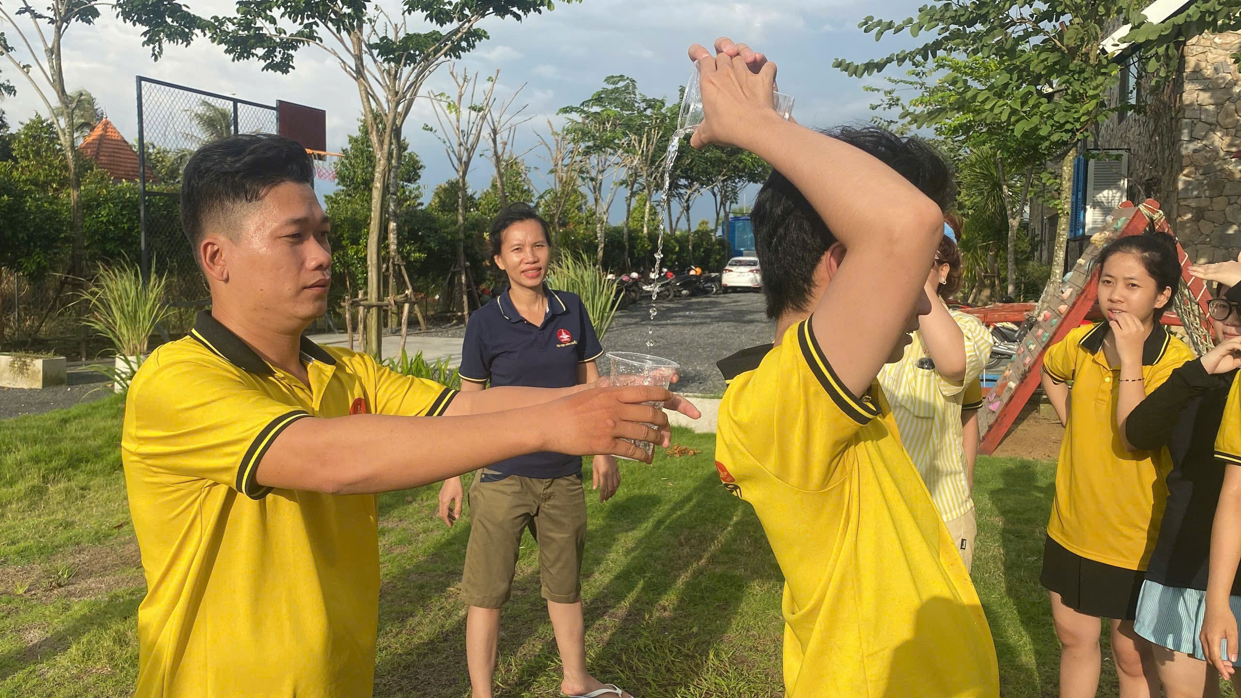 Cuối cùng là trò chơi “Chuyền nước tiếp sức” không chỉ mang lại tiếng cười mà còn góp phần tăng tinh thần gắn kết và sự đồng lòng giữa các đội. Những giọt nước được chuyền đi cũng là những khoảnh khắc gắn kết, tạo nên kỷ niệm đáng nhớ cho các thành viên.