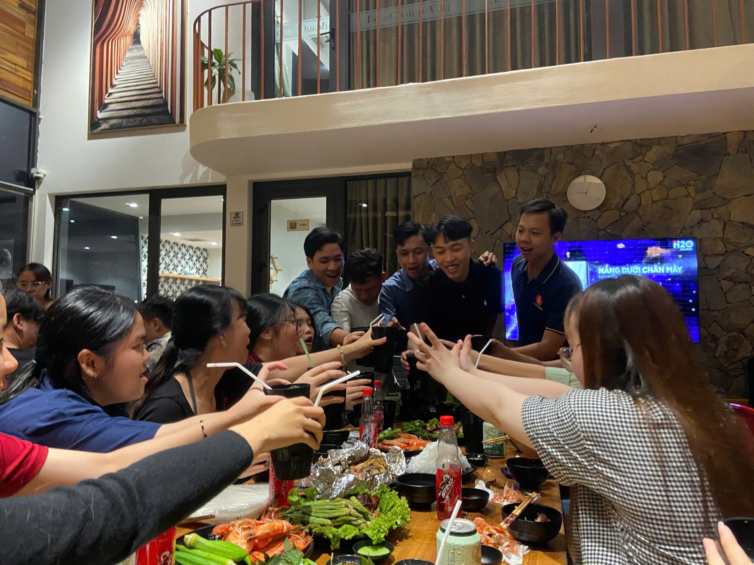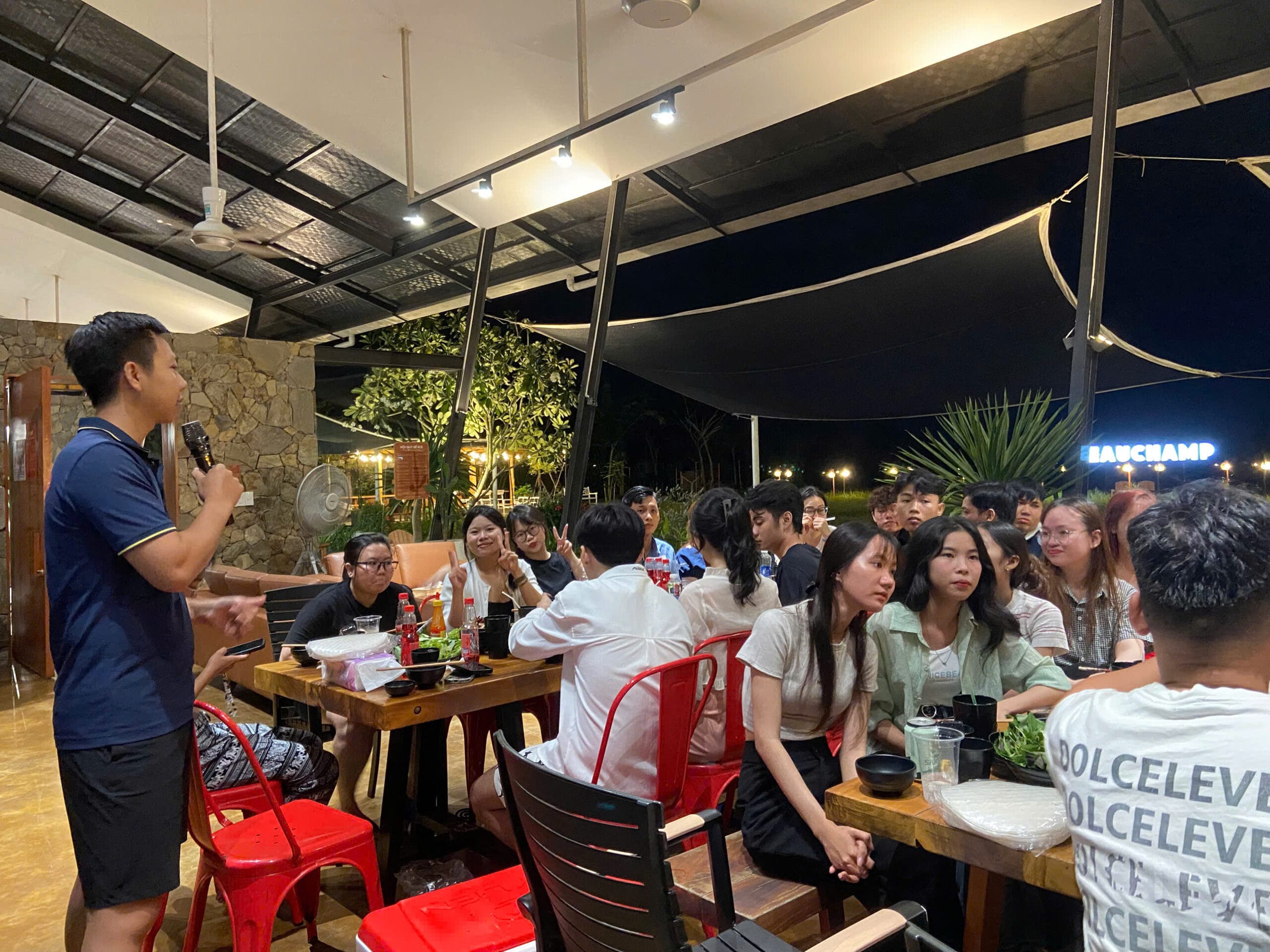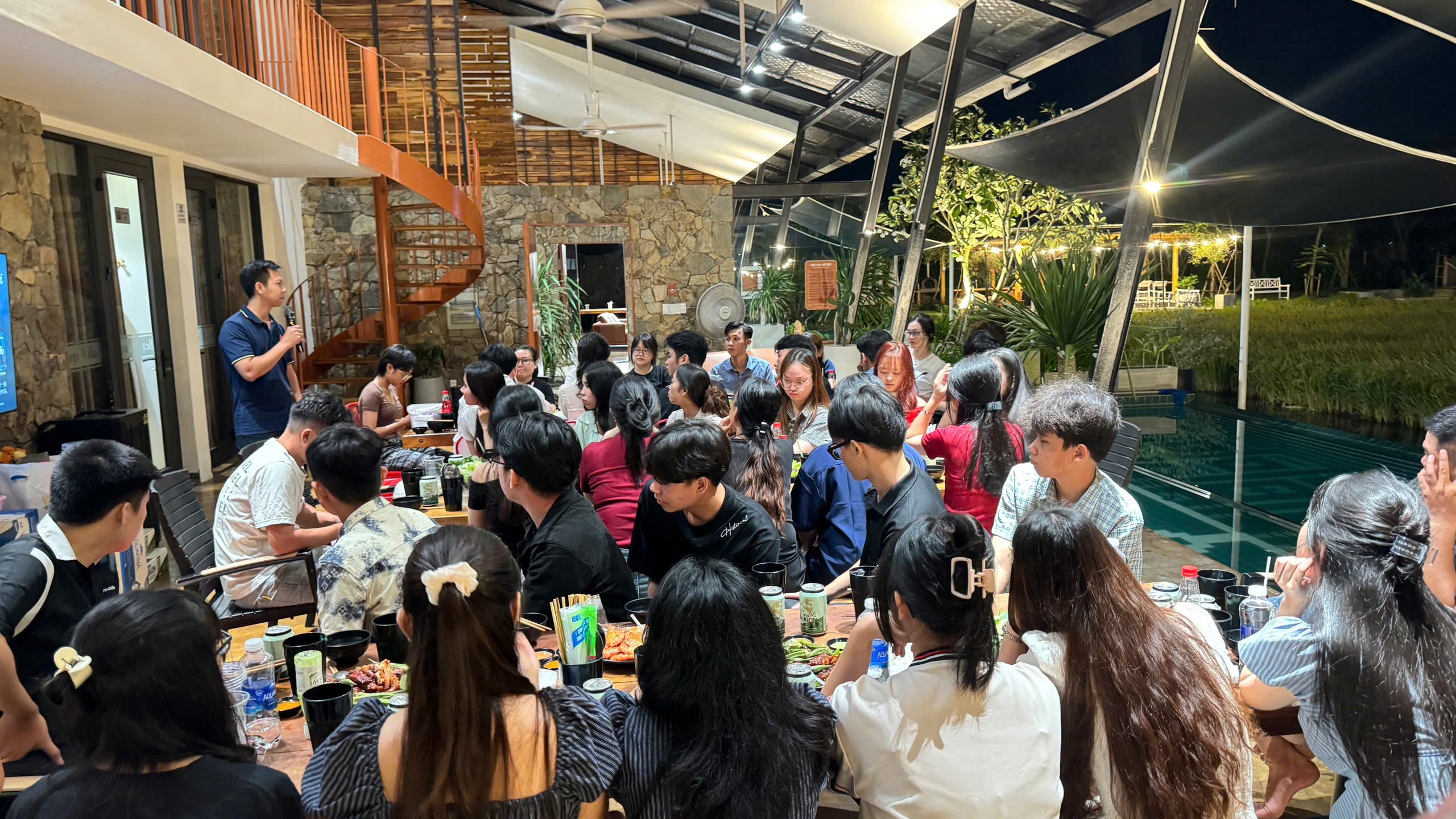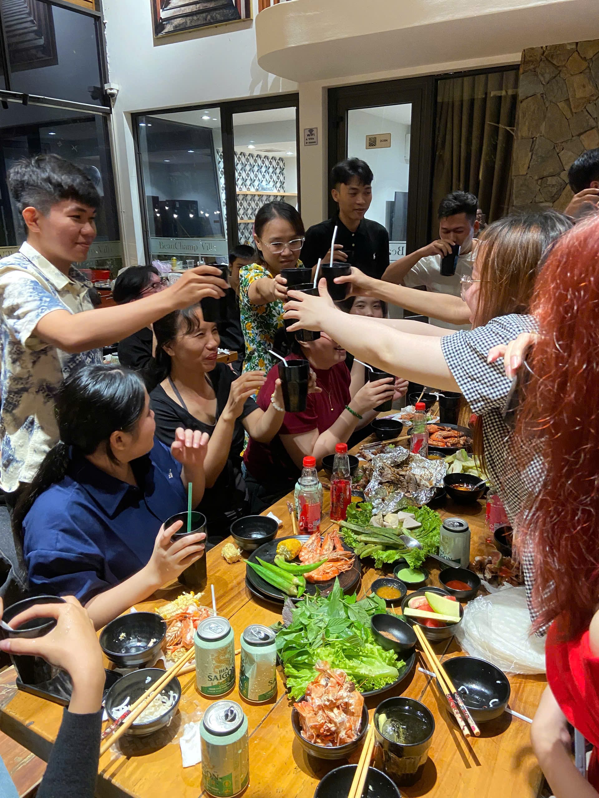 Khép lại một ngày hoạt động sôi nổi với nhiều trải nghiệm và không ít mệt mỏi, mọi người lại cùng nhau quây quần bên bữa ăn thân mật. Đây là khoảng thời gian để các thành viên thư giãn, chia sẻ những câu chuyện trong ngày, cùng nhìn lại những khoảnh khắc vui nhộn và tiếp thêm năng lượng sau một ngày tràn đầy hoạt động. Bữa ăn không chỉ đơn thuần là lúc nghỉ ngơi, mà còn là dịp để mọi người gắn kết hơn, tạo nên những kỷ niệm ấm áp và đáng nhớ bên nhau.